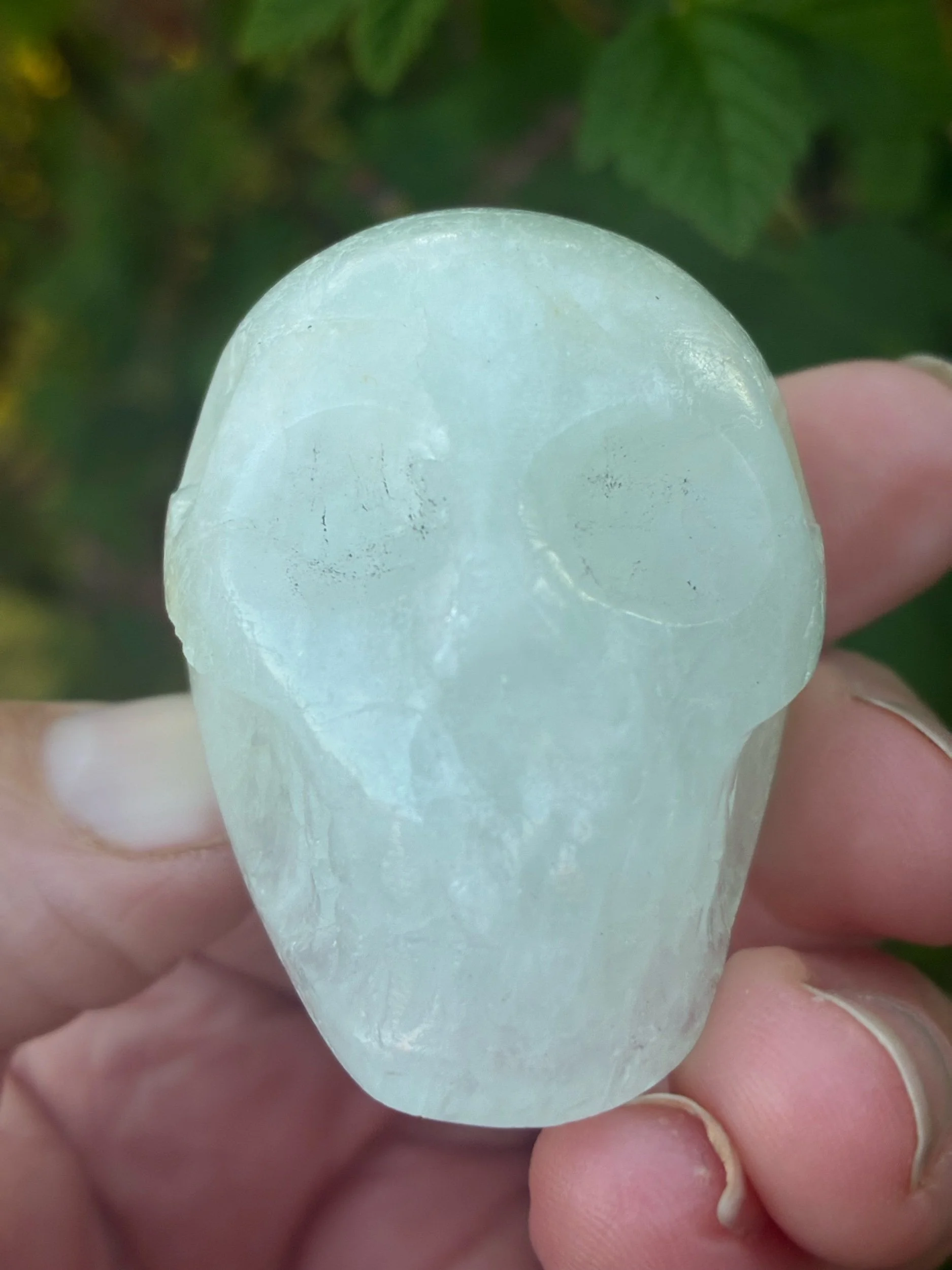 The Aquamarine Skulls carry a gentle yet powerful energy, encouraging a calm and peaceful mindset while inviting the assimilation of higher vibrational frequencies. Their soft, flowing presence promotes tolerance and actively supports the clearing of the throat chakra — helping your authentic voice to emerge, perhaps softer and more profound than you ever imagined.