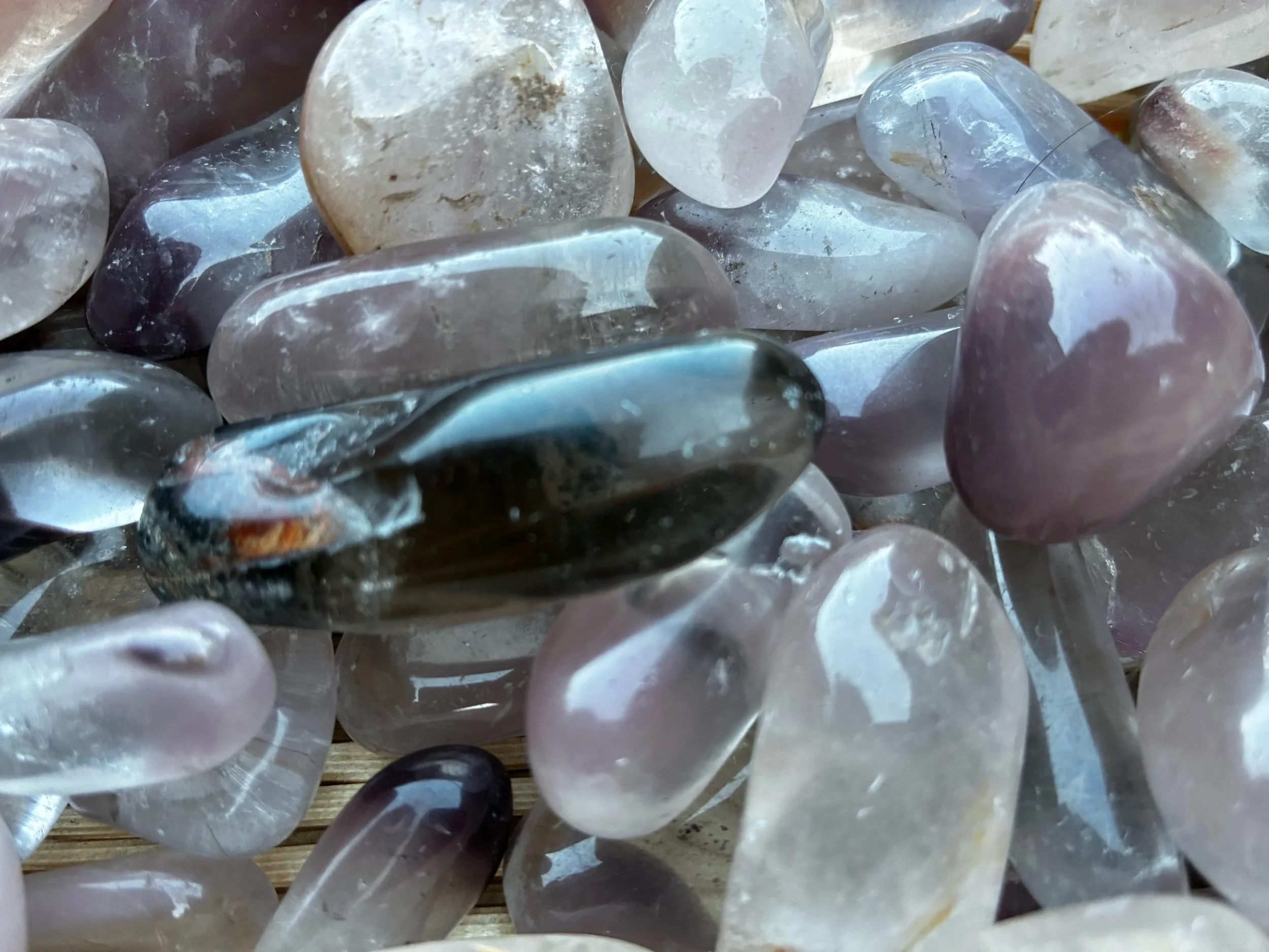 Lithium Quartz Tumbles sold in 4 different sizes;