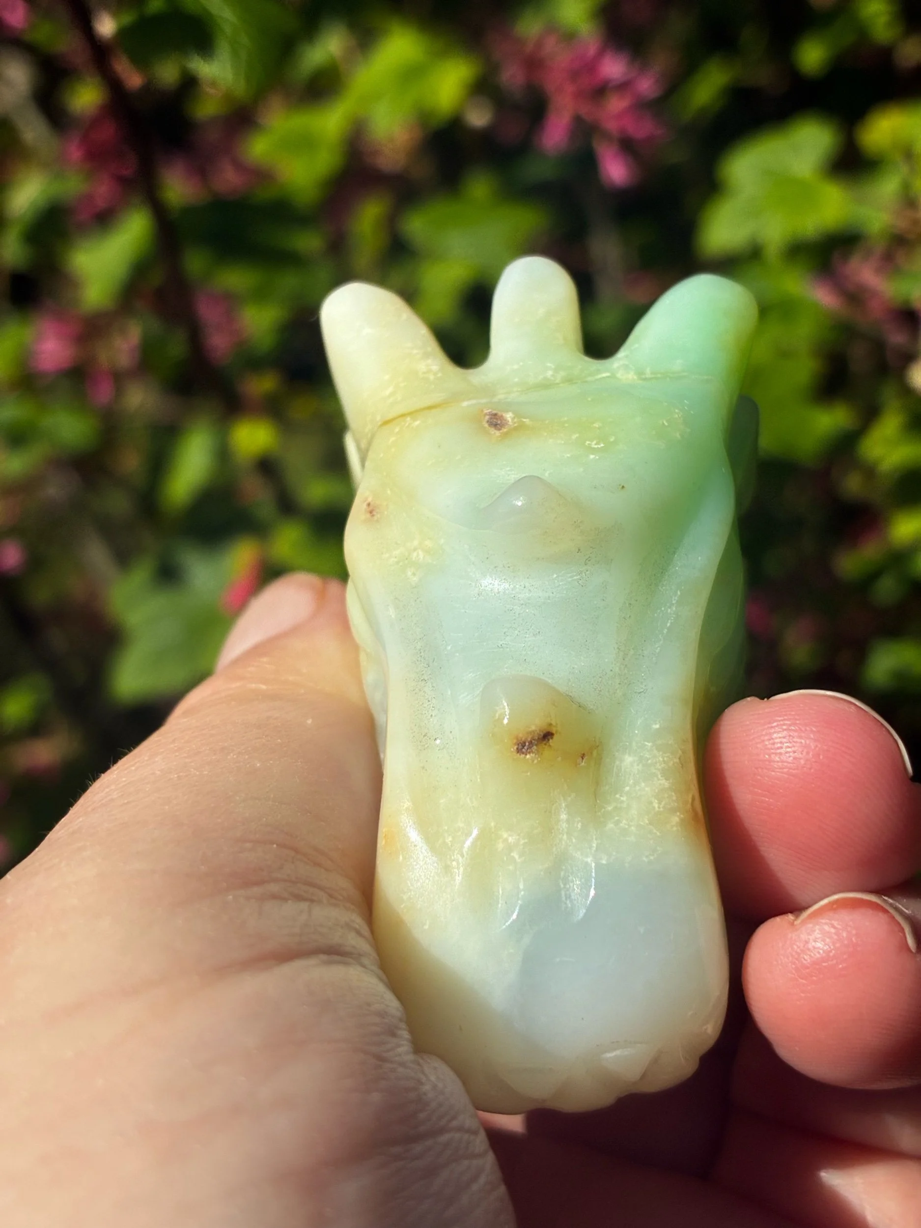 The Heart Dragons have landed. Brazilian-carved Chrysoprase in its purest form, a rarer dragon find — and there are only four in existence. Each one pulses with the frequency of compassion, grace, and unconditional love. One among them is a warrior spirit, here to shape its guardian in ways no other crystal can. As Chrysoprase activates the heart chakra, a gateway swings open — welcoming every experience with love, grace, and acceptance. Feel your zest for life reignite. See the world through new eyes. Walk your path with a heart wide open. Four Dragons. Four guardians. When they're claimed, this chapter closes.