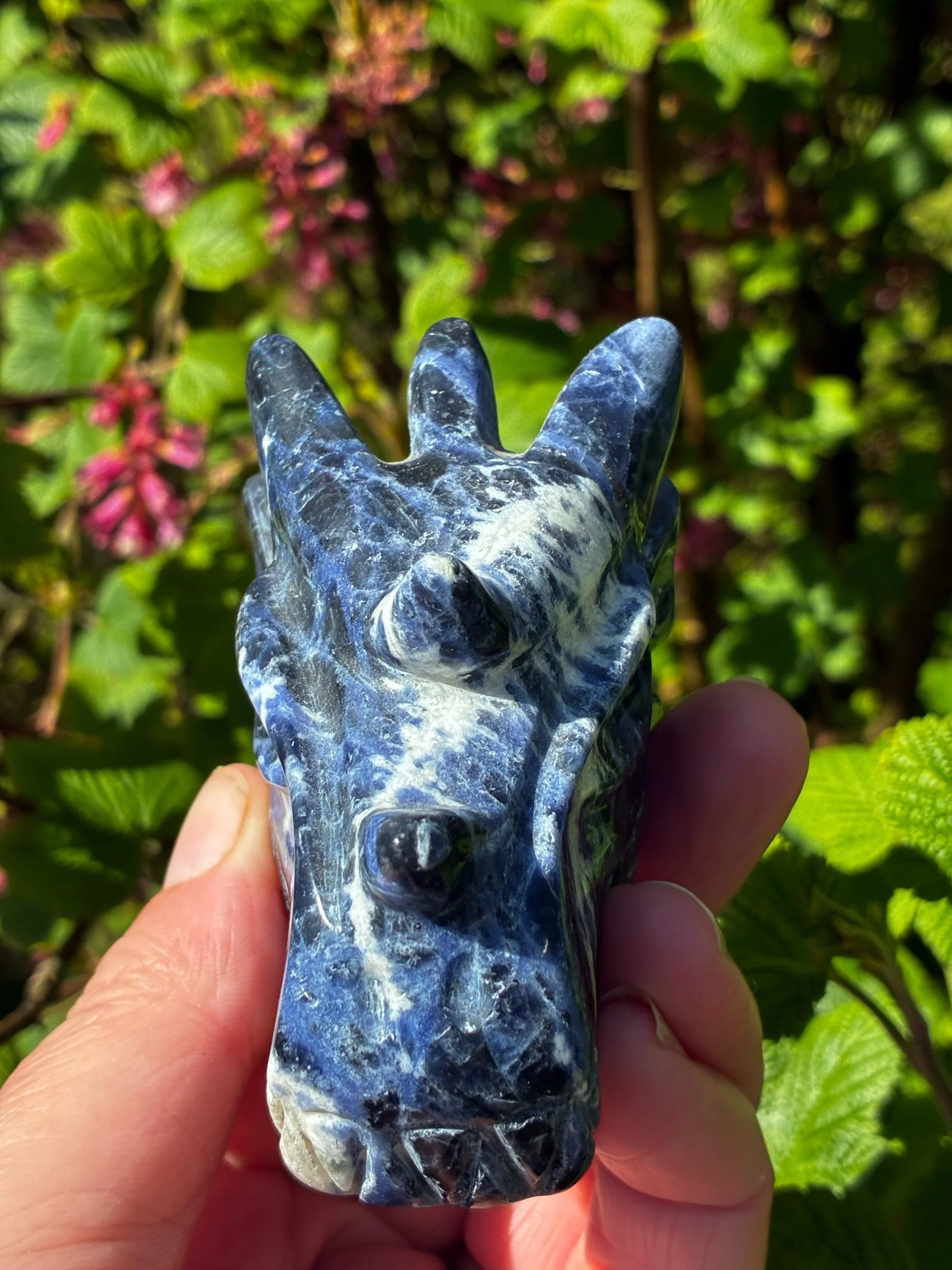 Two large Sodalite Dragons have descended — Brazilian-carved and radiating a cool, commanding presence. These are the Dragons of clarity. When the mind is tangled and the noise won't stop, they step in — bringing calm, creating distance, and guiding you toward logical, purposeful steps forward. With space comes vision. With vision comes clarity. And from that clarity, a powerful sense of community and connection begins to grow. If your mind craves stillness and your path demands clear thinking, these two are waiting.