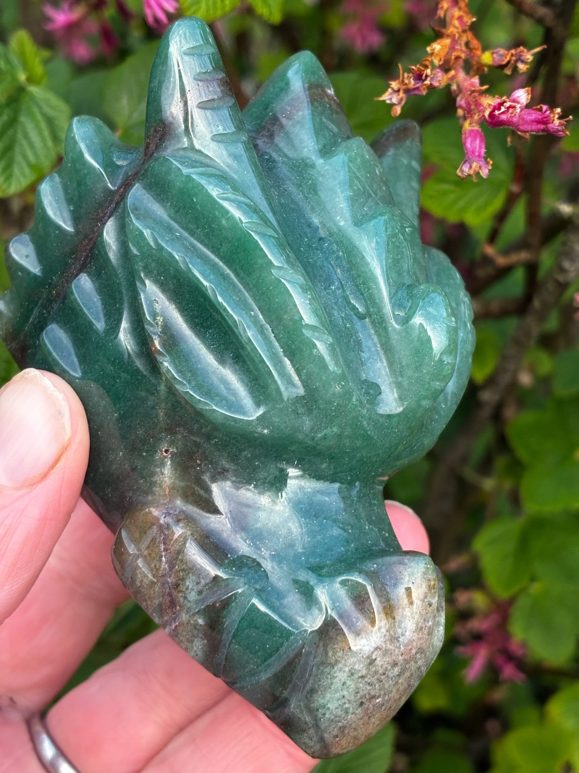 Two realms unite in one extraordinary piece. This unique Dark Green Brazilian Quartz Dragon and Skull combination is a rare fusion of ancient Skull Kingdom wisdom and the raw, soaring power of the Dragon realm. Together, they unlock new opportunities at energetic frequencies you never thought possible — elevating your path while keeping you deeply rooted. Spread your wings. Take flight. Let the wisdom ground you stronger than ever before. A piece this rare, carrying the energy of two kingdoms, does not come around twice.