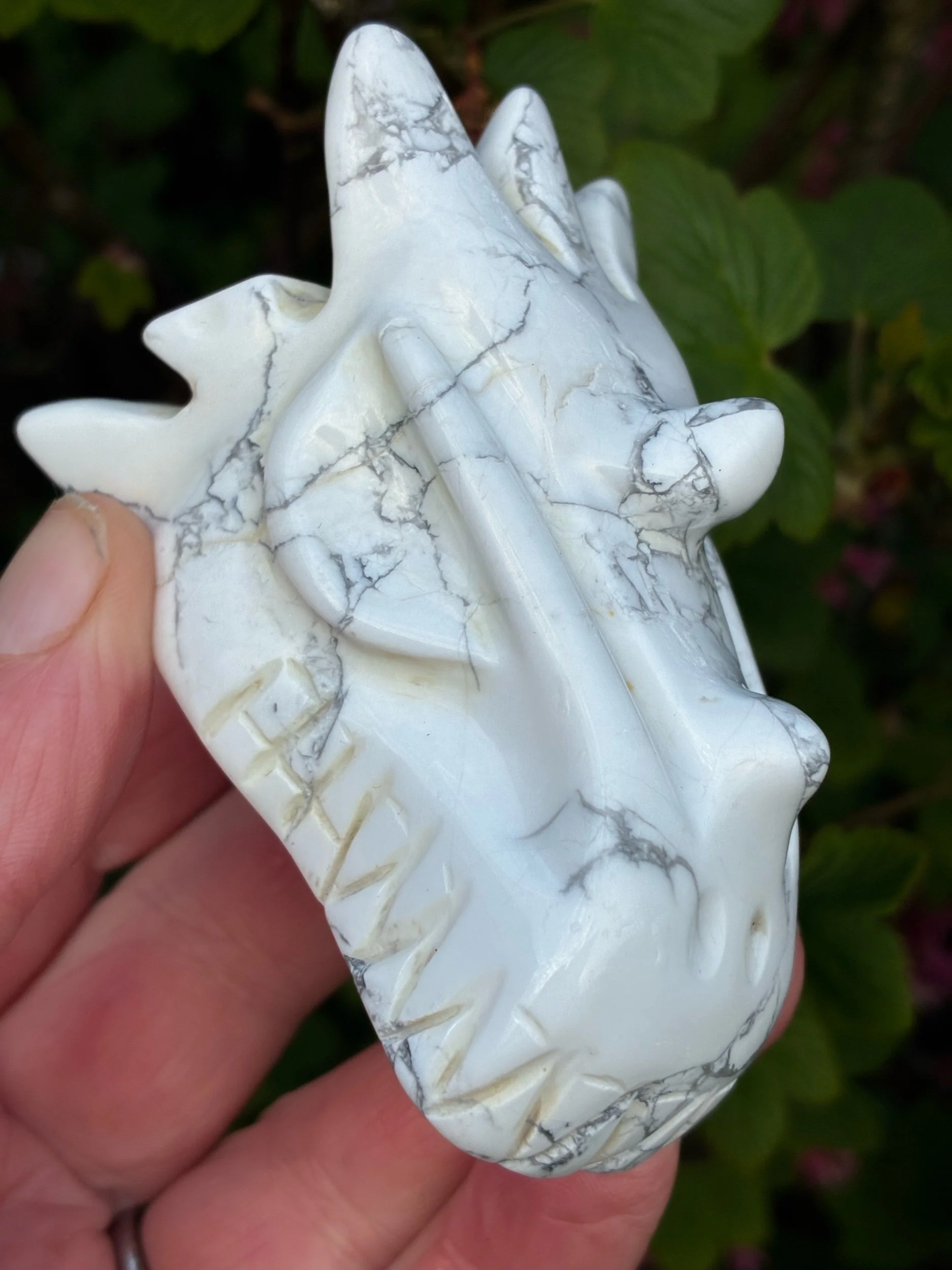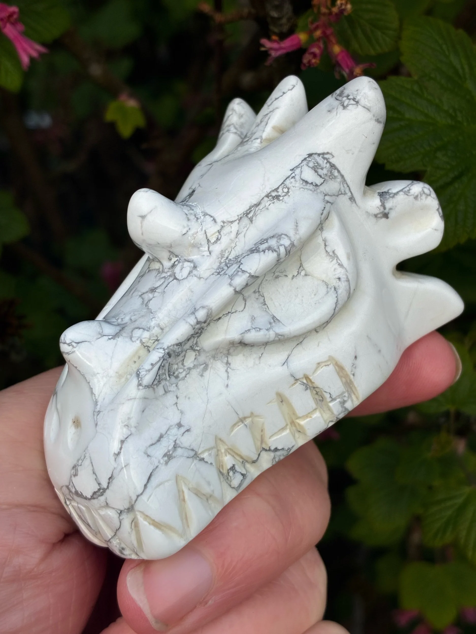 Meet your sanctuary in dragon form. This Brazilian-carved Howlite Dragon radiates ice-cool, calming energy that purifies and settles everything in its presence. Feel the tension melt away as its serene vibration washes over your nervous system, replacing chaos with stillness and restoring a deep, unshakeable calm. In a world that never stops, this dragon is your invitation to breathe. If peace is what you're seeking, it just found you.