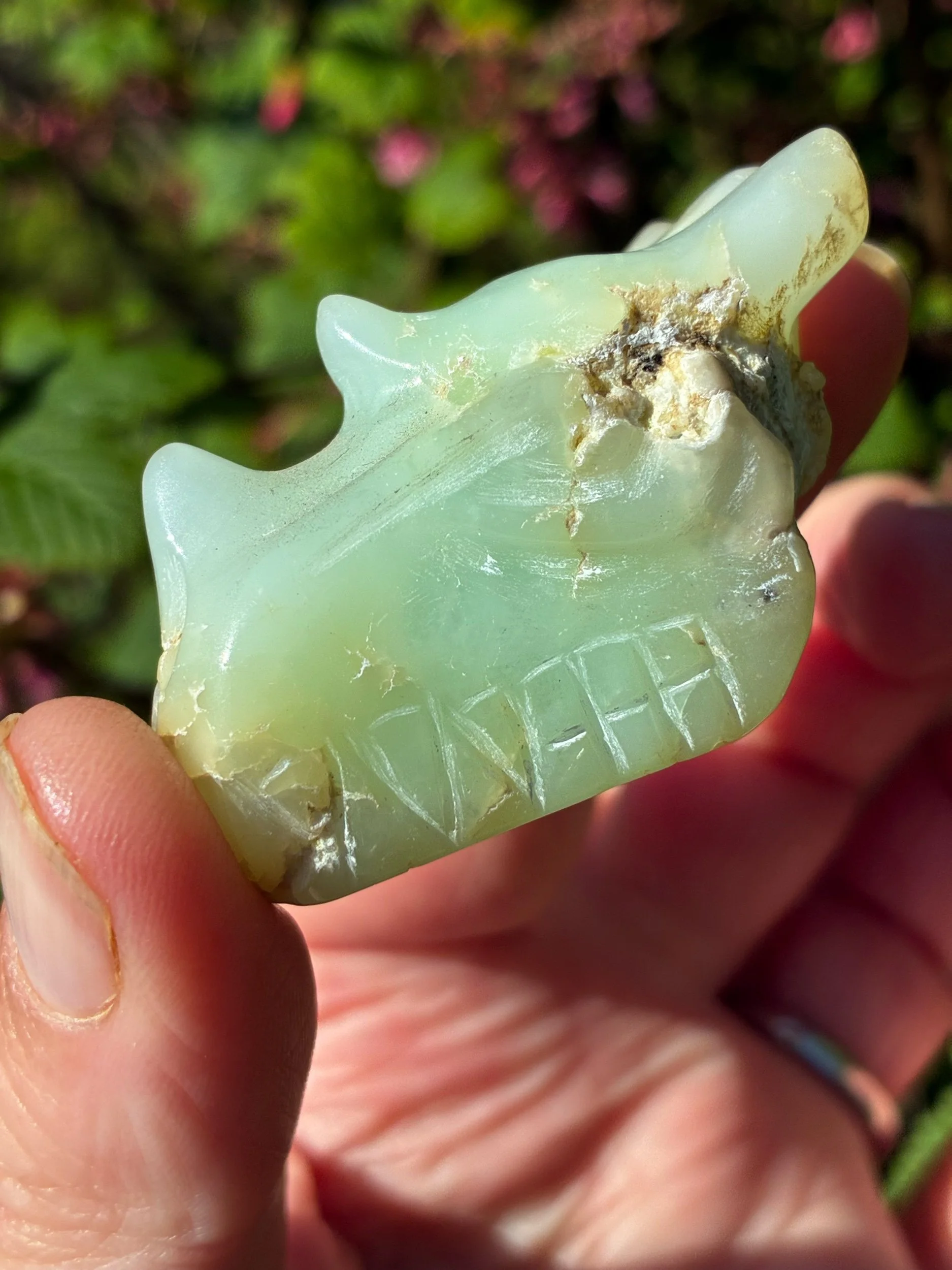 The Heart Dragons have landed. Brazilian-carved Chrysoprase in its purest form, a rarer dragon find — and there are only four in existence. Each one pulses with the frequency of compassion, grace, and unconditional love. One among them is a warrior spirit, here to shape its guardian in ways no other crystal can. As Chrysoprase activates the heart chakra, a gateway swings open — welcoming every experience with love, grace, and acceptance. Feel your zest for life reignite. See the world through new eyes. Walk your path with a heart wide open. Four Dragons. Four guardians. When they're claimed, this chapter closes.